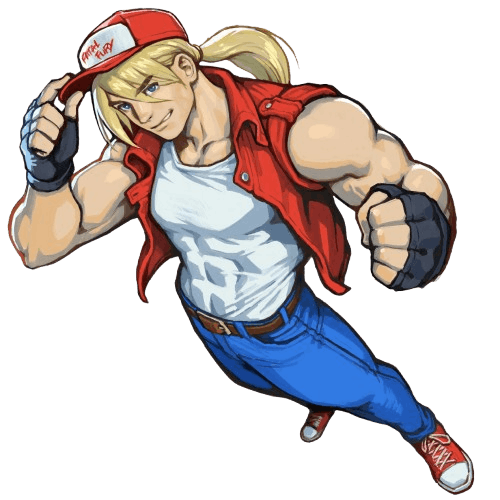 Terry was created by Jigglypuff in an effort to win the war. However, Terry did not want to fight in a war, so he used his GO! powers to escape the Nine Hells. He made it to the Subspace and lived with a pack of wolves for years while training, giving rise to his special move Buster Wolf. The move is called that because first he grabs you (kind of like a wolf with its fangs) and then explodes you (hence the 'buster'). His other move, Power Geyser, was inspired by what it looks like when lava erupts in the Nine Hells.